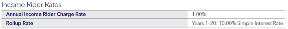 At the time of writing this article, the rider charges were 1.00% of the income base, deducted monthly from your annuity’s accumulated and minimum guaranteed contract value.