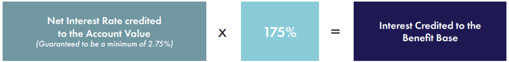- The net interest rate earned by the account value (Guaranteed to be a minimum of 2.75%)