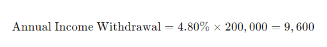 - The original income withdrawal percentage (4.80%) is multiplied by the current Benefit Base value.