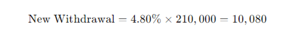 Since $10,080 is higher than the previous year's $9,600, your income withdrawal will increase to $10,080 per year.