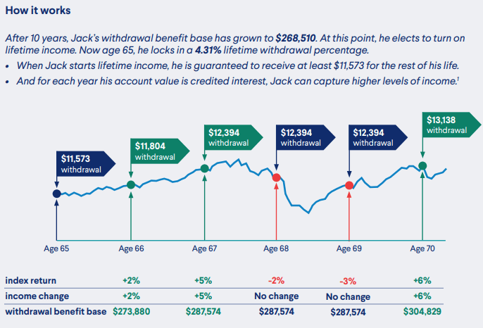 To summarise, your first decision is how you want to accumulate your Withdrawal Benefit Base (WBB): either through the Ready strategy for earlier income activation, or the Build strategy for higher long-term growth potential. Once your WBB is established and you’re ready to begin withdrawals, the next choice is how you want to receive lifetime income, either through the Level Income option, which provides higher and more predictable initial payments, or the Rising Income option, which starts lower but offers the potential for annual increases based on the chosen indexing strategies' performance.