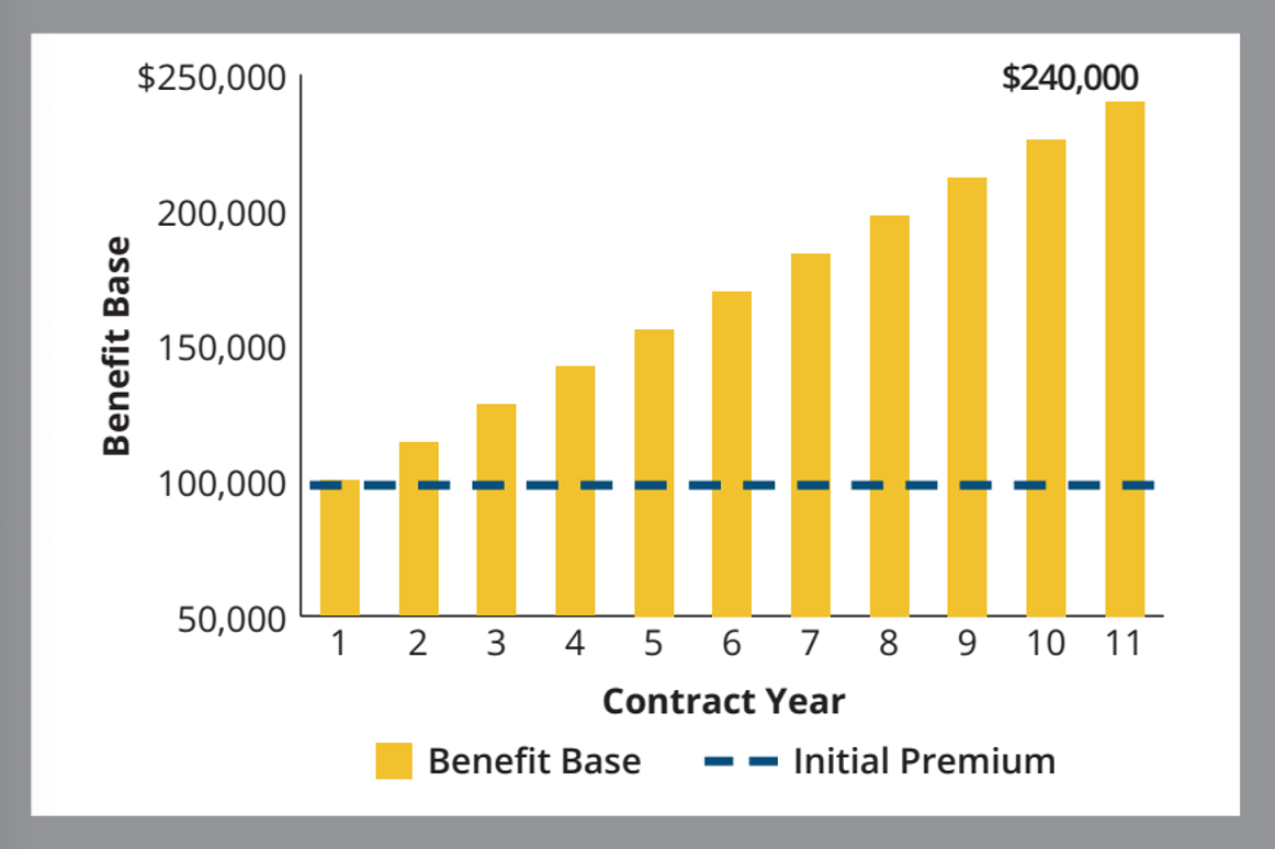 Below, we provide a detailed overview of the available rider options. But first, let’s discuss the Income Benefit Base.
