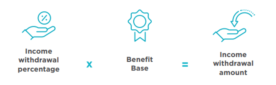 On your contract anniversary, your lifetime income withdrawal amount will be recalculated as the greater of the previous year's income withdrawal amount or the original income withdrawal percentage multiplied by the current Benefit Base (Income Account Value).